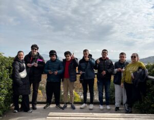 Foto de grupo en un mirador hacia las montañas